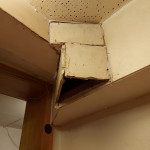 Ich begab mich an die Stelle, auf der der Bürostuhl gestanden hatte und zeigte an die Wand vor mir. Eine seltsam aussehende Holzverkleidung verdeckte dort in Blickrichtung ein Rohr an der Wand.